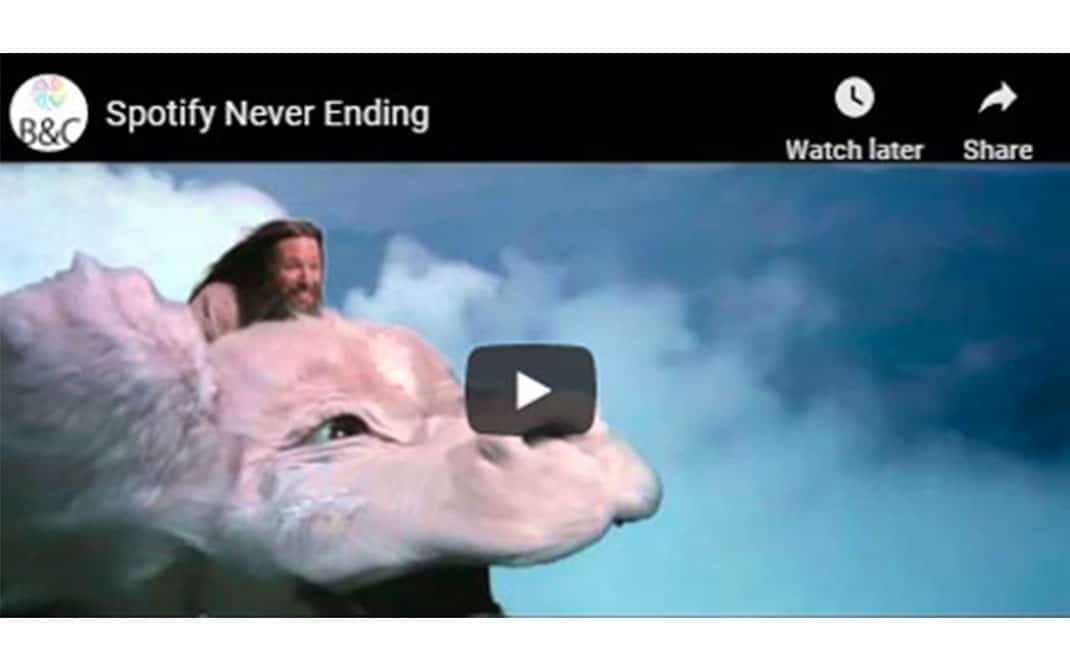 فیلم مشهور «داستان بی پایان» یکی از آثار پرطرفدار دهه ۸۰ میلادی در سینمای جهان محسوب می شود. این فیلم در زمان اکران سر و صدای بسیار زیادی به پا کرد. بازاریاب های اسپاتیفای در راستای جلب توجه مخاطب میانسال به خدمات شان اقدام به همکاری دوباره با ستاره های مشهور این فیلم کردند.