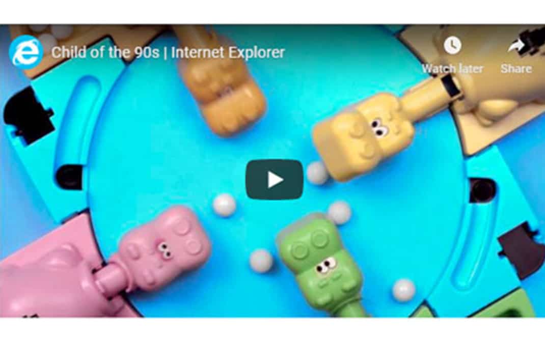 اگرچه مرورگر اینترنت اکسپلورر دیگر وجود خارجی ندارد، اما تبلیغ مشهور مایکروسافت در سال ۲۰۱۳ نظر بسیاری از کاربران را به خود جلب کرد. این تبلیغ حتی در جشنواره وبی نیز نامزد کسب جایزه شد. محور اصلی تبلیغ موردنظر مرور خاطرات مشتریان مایکروسافت با محصولات مختلف این غول دنیای فناوری از دهه ۹۰ به این سو است. به این ترتیب بسیاری از افراد تجربه های لذت بخش شان در زمینه استفاده از محصولات این غول دنیای کسب و کار را مرور کردند.