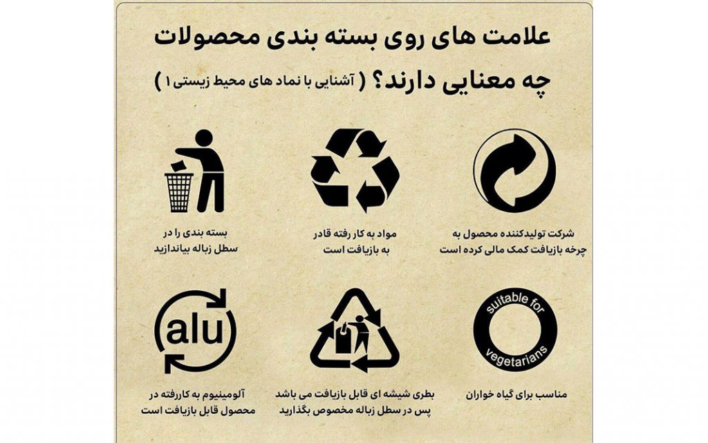 علائم زیست محیطی درج شده روی بسته بندی کالاها دارای مفهوم روشن و مشخصی است که به شناخت ما از چگونگی بازیافت آن و نیز مواد تشکیلدهنده محصول کمک می کند.