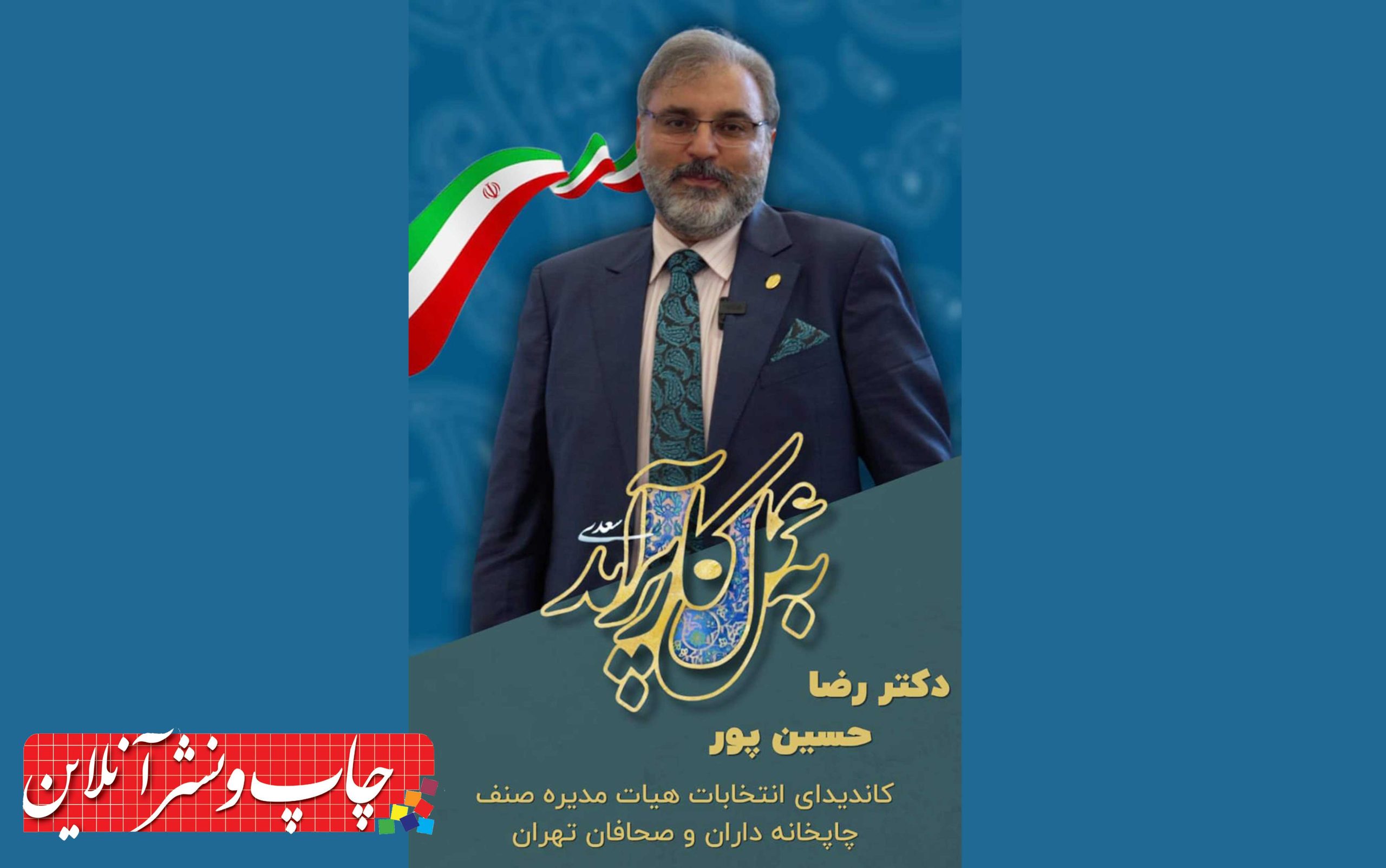با توجه به اعلام هیئت اجرایی برگزاری انتخابات اتحادیههای صنفی تهران، انتخابات اتحادیه چاپخانه داران و صنف صحاف شهرستان تهران سهشنبه ۲۶ فروردینماه ۱۴۰۴ از ساعت ۹ و ۳۰ دقیقه صبح تا ۱۴ ظهر در خیابان شریعتی، روبروی کوچه سمنان، ساختمان جمعیت خیریه بنیس برگزار میشود. چاپ و نشر پیرو رسالت آگاهی رسانی خود وظیفه دید تا به معرفی نامزدهای انتخاباتی، رزومه، اهداف و برنامه هایشان بپردازد. در این بخش دکتر رضا حسین پور یکی دیگر از نامزدهای انتخاباتی به معرفی خود و برنامه هایش پرداخت.