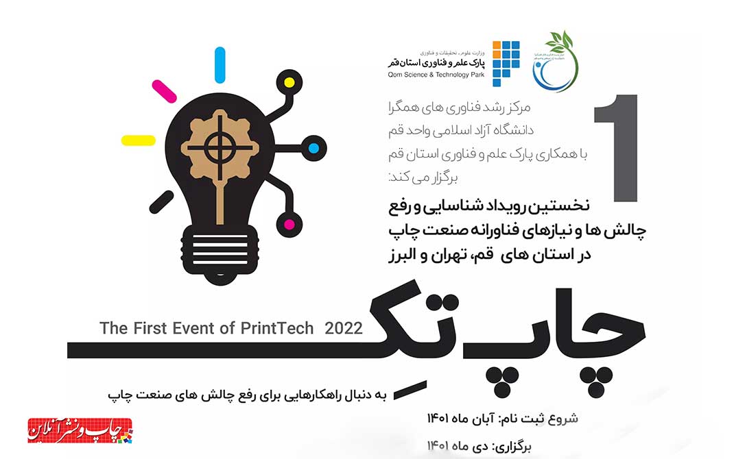 به گزارش چاپ و نشر آنلاین به نقل از ایبنا؛ محمد سلامت، کارشناس صنعت چاپ با اعلام خبر برگزاری رویداد چاپ تِک، گفت: این رویداد برنامهای چالشی به شمار میآید که مرکز رشد فناوری های همگرا دانشگاه آزاد اسلامی قم با همکاری فعالان صنعت چاپ برگزار میکند.