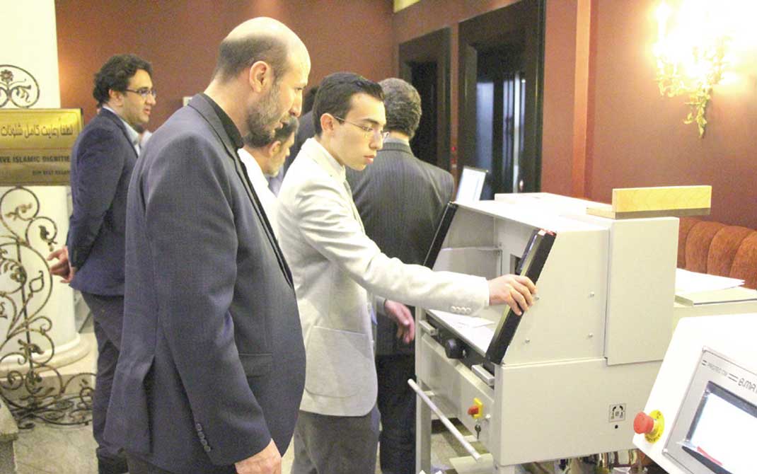 این دستگاهها میتوانند کارهایی تا عرض ۶۰ سانتیمتر را نیز پانچ کنند و از اینرو برای تولید تقویم دیواری و امثال آن بسیار مناسب هستند، سرعت بالای آن هم که اشاره شد میتواند در تولید با فنر دوبل و در اقلامی چون تقویم رومیزی و یا دفتر در حجم انبوه استفاده شود. ما در نمایشگاهی که در طبقه پایین به نظر شما رسید مدلهای مدرنی از این دستگاهها را عرضه کردهایم که مجوز CE گرفته است، یعنی مجوزی که عرضه آن را در اروپا ممکن ساخته است.