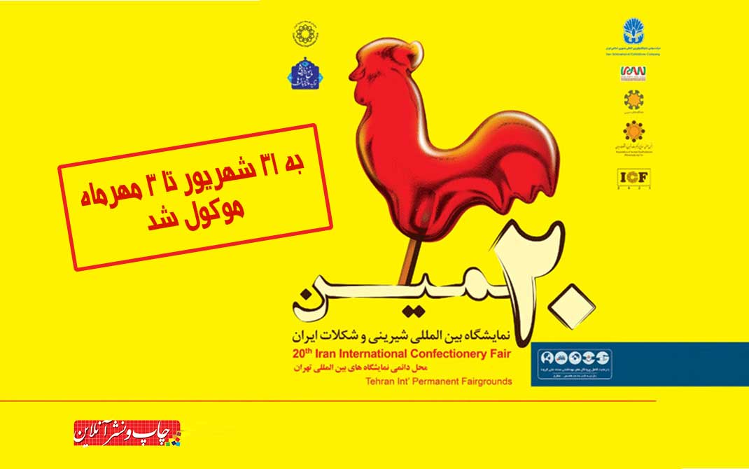 به گزارش چاپ و نشر آنلاین به نقل از گسترش نیوز، بر اساس اطلاعیه ستاد خبری بیستمین نمایشگاه بین المللی شیرینی و شکلات ایران، این نمایشگاه از ۳۱ شهریوماه لغایت ۳ مهرماه برگزار می شود.